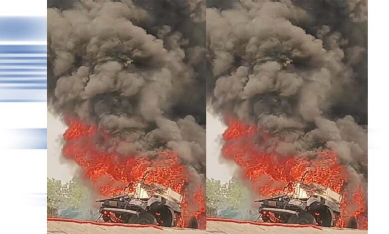 सकरी नेशनल हाईवे पर खड़े ट्रेलर में लगी भीषण आग, मचा हड़कंप
