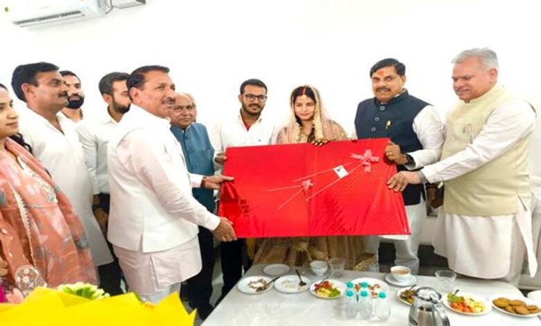 मुख्यमंत्री डॉ. यादव ने नवदंपति को शुभाशीष देते हुए उन्हें उपहार भी भेंट किए और उनके सुखद एवं समृद्ध वैवाहिक जीवन की कामना की। इस अवसर पर वरिष्ठ विधायक एवं प्रदेशाध्यक्ष श्री हेमंत खंडेलवाल, सांसद शिव मंगल सिंह तोमर, महापौर श्रीमती शारदा सोलंकी सहित जनप्रतिनिधि एवं परिजन उपस्थित थे।